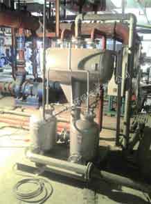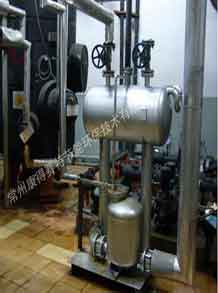 通常冷凝水可以通過疏水閥很方便地排出設備,進入冷凝水排放系統(tǒng),如果冷凝水已經(jīng)被污染,則應該直接排放掉;如果沒有污染,可以將其回收到鍋爐給水箱以利用冷凝水含有的熱量,這樣同時也節(jié)省了水和水處理的費用。有時用汽設備內部會產(chǎn)生真空,這樣會影響冷凝水的排出,從而影響蒸汽換熱效率,這時冷凝水就需要用泵壓出去。